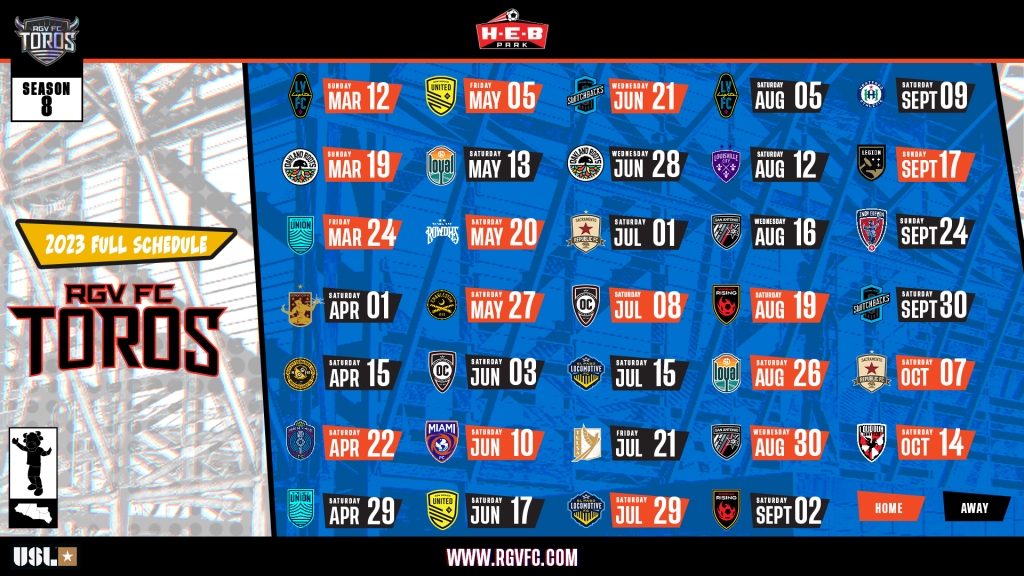 EDINBURG, Texas (Monday, Jan. 9, 2023) – Rio Grande Valley FC announced today its 34-game schedule for the 2023 USL Championship regular season. The club enters its eighth season in the USL, Wilmer Cabrera enters third consecutive season as Head Coach and Sporting Director, his fourth overall at the helm dating back to 2016.